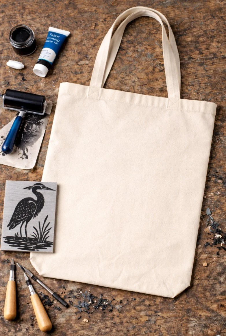 Our 2.5 hour Tote Bag Lino Printing Workshop lets you create a bold, practical piece using traditional block printing techniques. You’ll design and carve your own lino block before printing onto a high-quality organic cotton tote bag using striking black and blue fabric inks. A relaxed, hands-on session combining creativity with a finished item you’ll genuinely want to use.