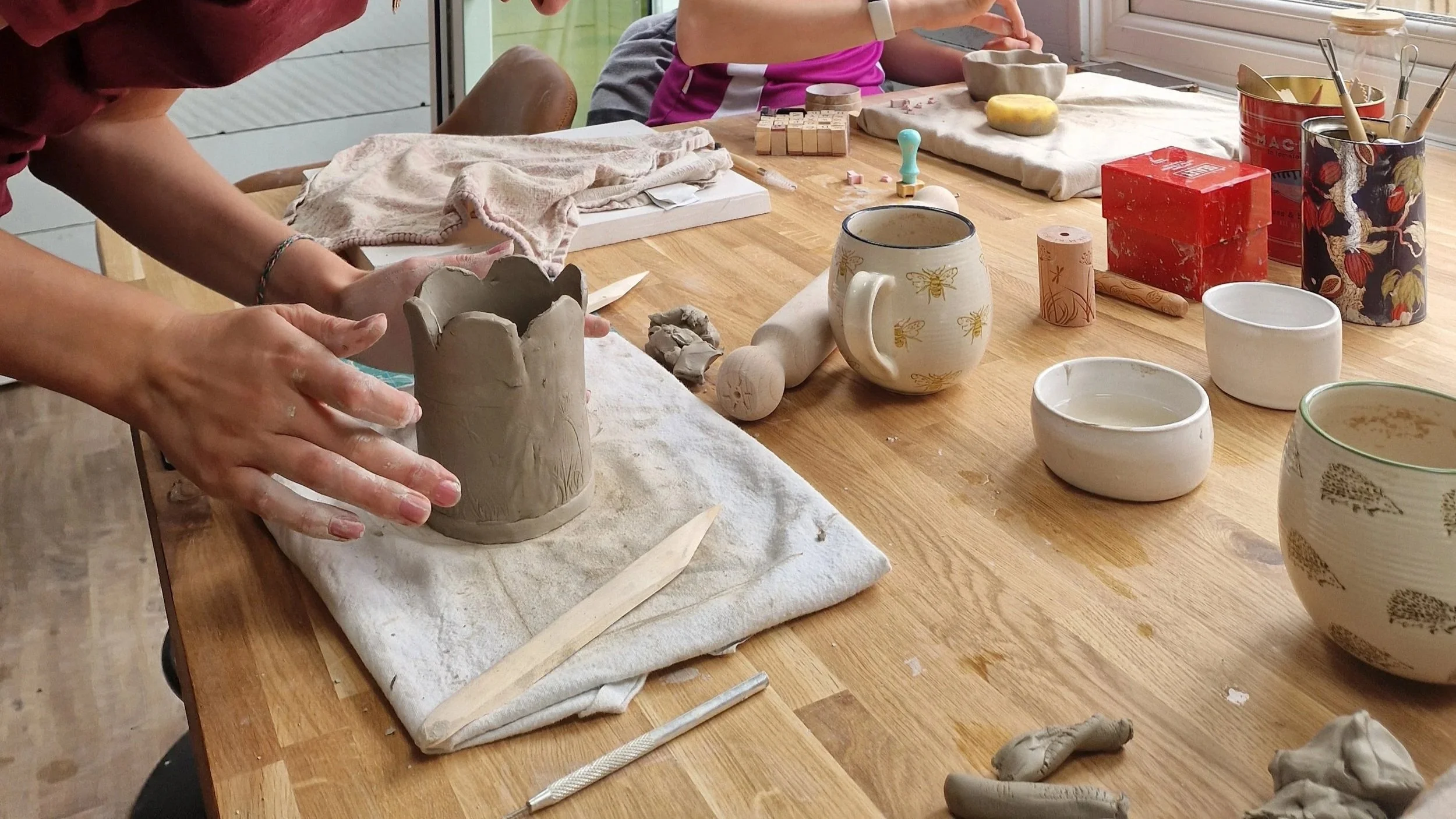 Our Peculiar Pots Workshop is a hands-on clay session introducing children to core handbuilding techniques in a fun, accessible way. They’ll learn joining methods, create pinch pots, and experiment with slab rolling to build their own unique ceramic pieces. Pots can then be personalised using stamps, textures and colourful underglaze decoration — a creative, tactile workshop focused on confidence, experimentation and producing characterful handmade ceramics.